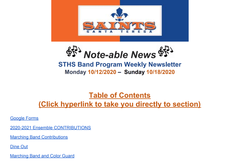 Weekly Newsletter – 10/11/2020 October 11, 2020October 11, 2020Santa Teresa Music Click on Note-able News for this week’s Newsletter