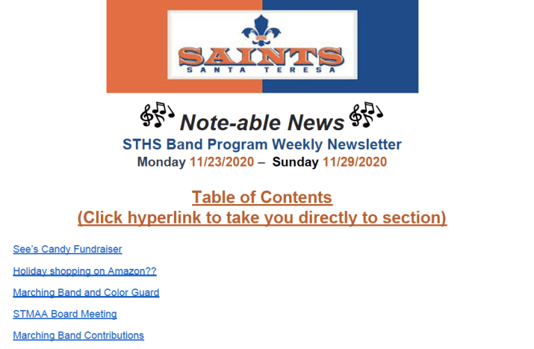 Weekly Newsletter – 11/22/2020 November 22, 2020November 22, 2020Santa Teresa Music Click on Note-able News for this week’s Newsletter