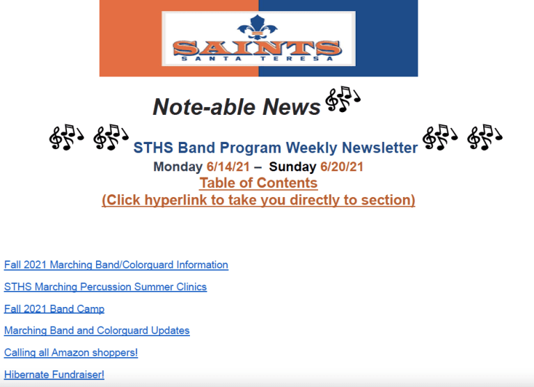 Weekly Newsletter – 6/13/2021 June 13, 2021July 2, 2021Santa Teresa Music Click on Note-able News for this week’s Newsletter