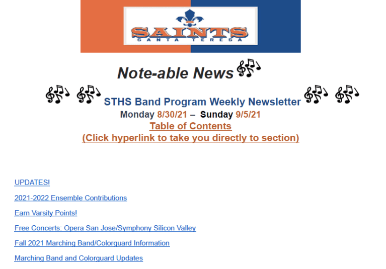 Weekly Newsletter – 8/30/2021 August 30, 2021Santa Teresa Music Click on Note-able News for this week’s Newsletter