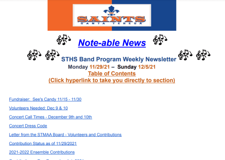 Weekly Newsletter – 11/29/2021 November 29, 2021Santa Teresa Music Click on Note-able News for this week’s Newsletter
