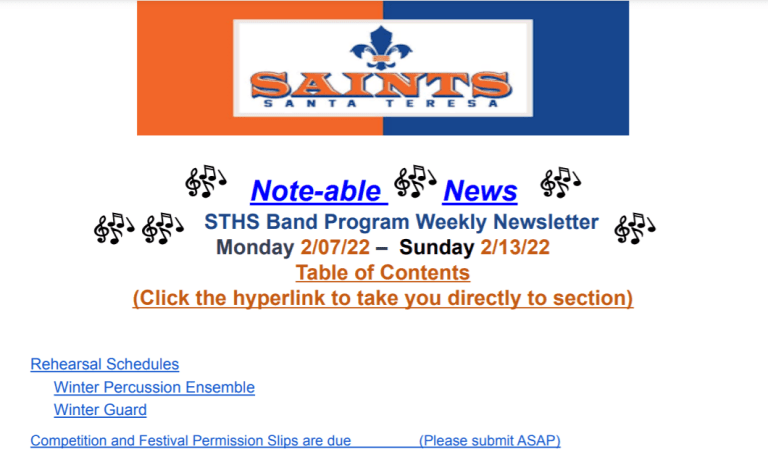 Weekly Newsletter – 2/6/2022 February 6, 2022Santa Teresa Music Click on Note-able News for this week’s Newsletter