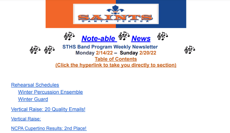 Weekly Newsletter – 2/14/2022 February 14, 2022Santa Teresa Music Click on Note-able News for this week’s Newsletter