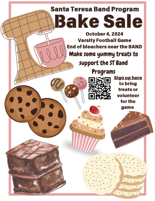 Another yummy bake sale is happening at the football game this Friday night! Volunteer to bake some goodies and/or come get your sweets from us while supporting an AMAZING Band program!