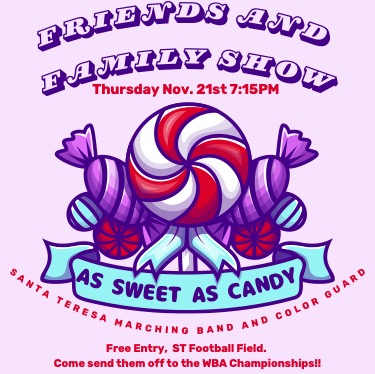 Join us next Thursday, 11/21, at 7:15pm for the friends and family show of the 2024 STHS Marching Band and Color Guard season